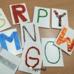 -układanie liter z rożnych materiałów Do tej zabawy wykorzystujemy wszystko to, z czego można ułożyć literę np. koraliki, fasola, kasztany, guziki, pompony, spinacze, wstążkę, sznurek itp. Wiele materiałów znajdziemy w domu.