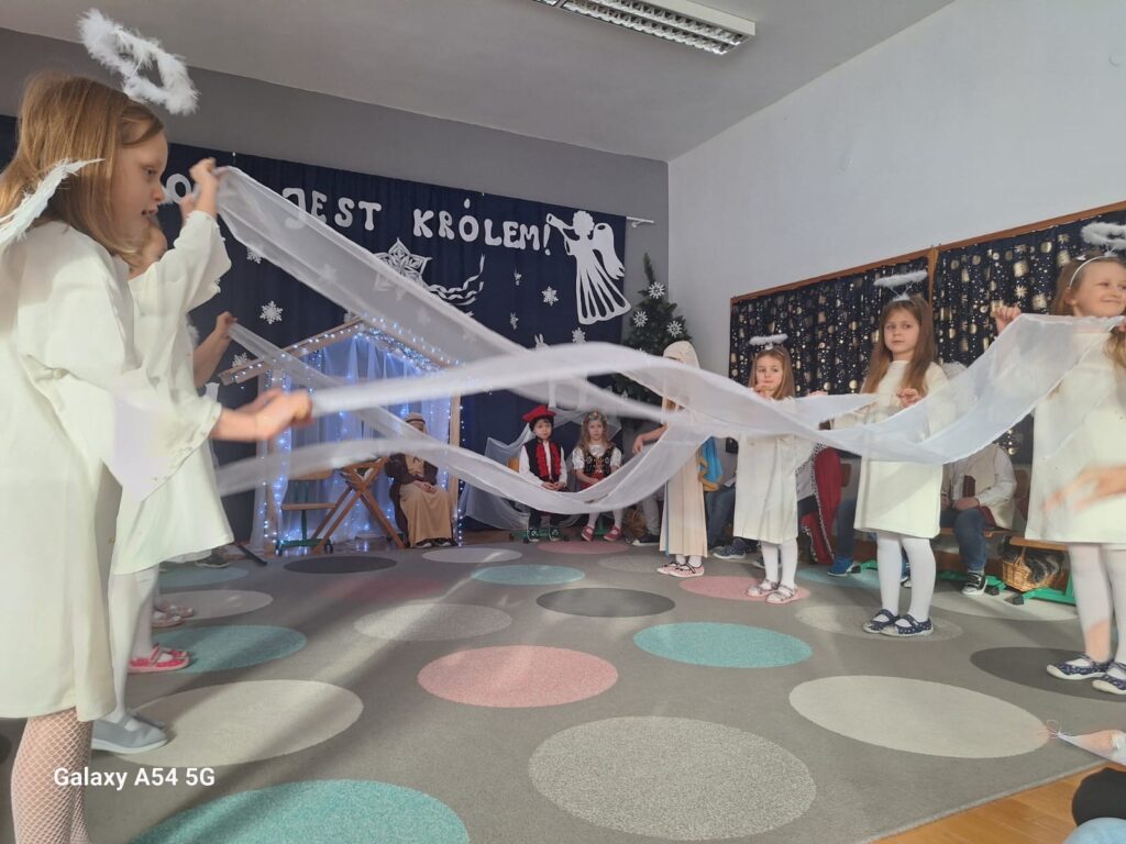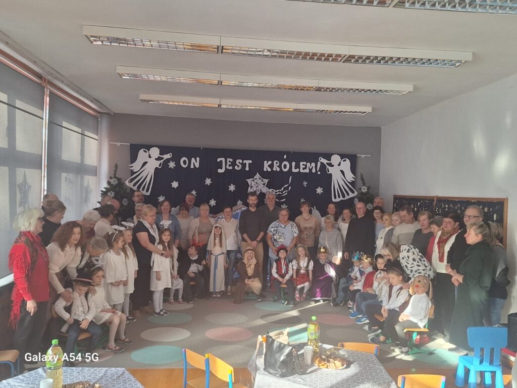 Dzień Babci i Dziadka to szczególna okazja. Zaprosiliśmy więc seniorów , aby uczcić ich święto. 15.01 gościliśmy dziadków i babcie naszych przedszkolaków, a 16.01 seniorów z DPD „ Słoneczna Jesień” w Kluczach. Zaprezentowaliśmy przygotowane przez nas jasełka oraz wiersz i piosenkę dla dziadków. Mali artyści zachwycili swoim talentem, zaangażowaniem, radością i świąteczną atmosferą. Przedstawienie było pełne emocji, wzruszeń, które udzieliło się wszystkim. Kwintesencją odwiedzin był poczęstunek pysznymi ciasteczkami wykonanymi własnoręcznie przez dzieci z pomocą Pań kucharek.