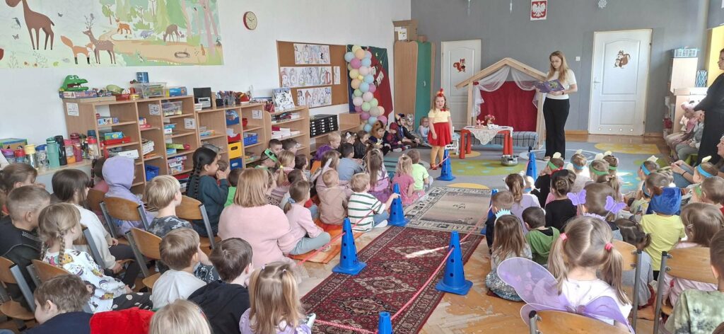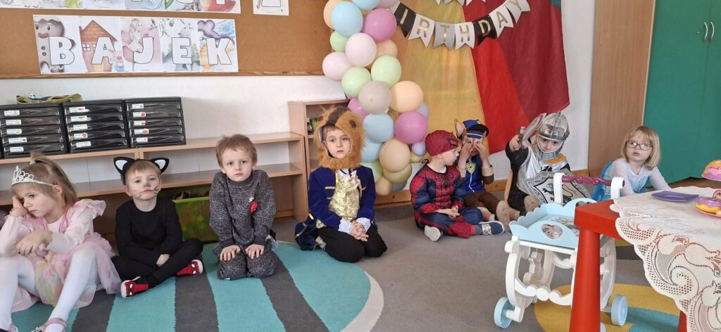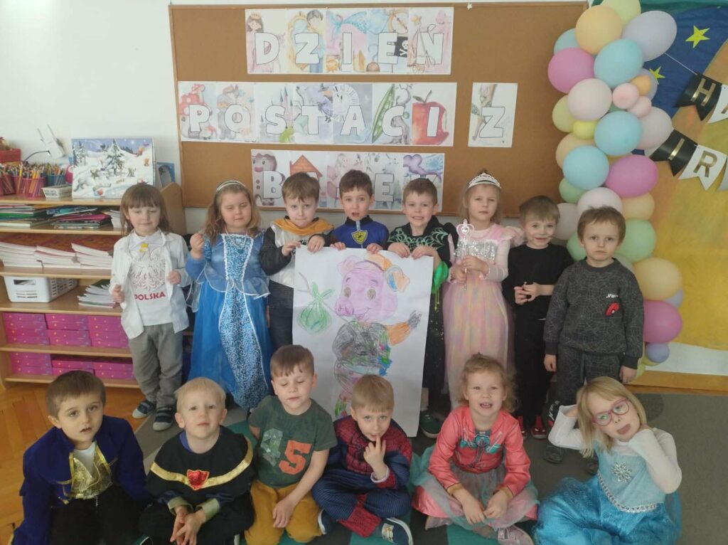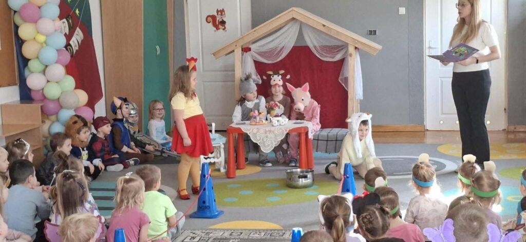 Dnia 27.02.2026 r. w naszym przedszkolu odbył się wyjątkowy Dzień Postaci z Bajek. Tego dnia dzieci przyszły przebrane za swoich ulubionych bohaterów z bajek i baśni. Wśród barwnych strojów można było zobaczyć m.in. Elsa, Spider-Man, Królewna Śnieżka, Bestia, rycerz oraz Psi Patrol. Dzieci z dumą prezentowały swoje stroje, opowiadały o wybranych postaciach oraz brały udział w licznych zabawach. Grupa „Żółwiki” zaprezentowała wszystkim dzieciom krótką inscenizację wiersza „Kwoka” Jana Brzechwy. Celem wydarzenia było rozwijanie zainteresowań czytelniczych, kształtowanie wyobraźni oraz integracja dzieci poprzez wspólną zabawę. To był dzień pełen radości, uśmiechu i bajkowej atmosfery, który na długo pozostanie w naszej pamięci.