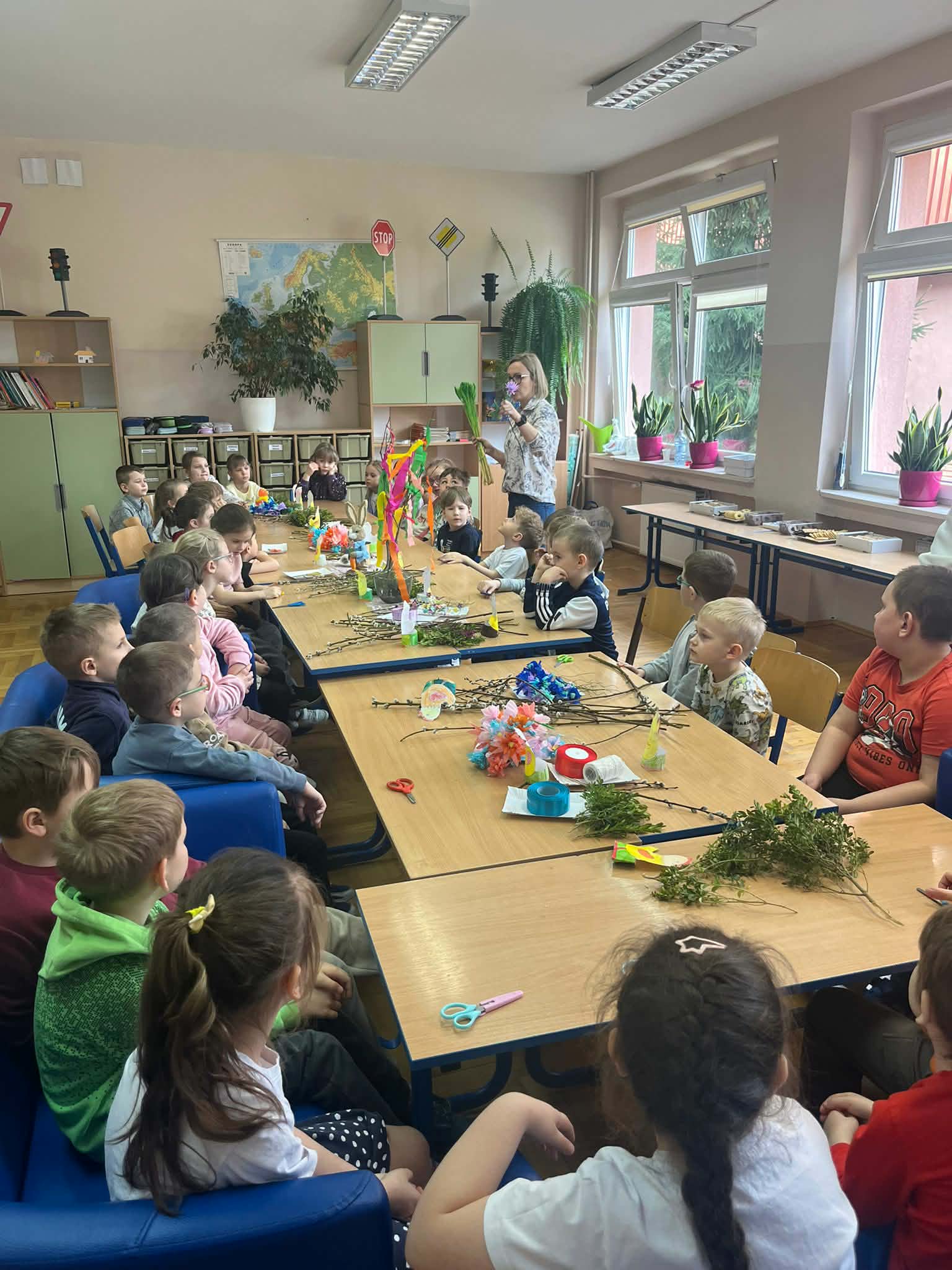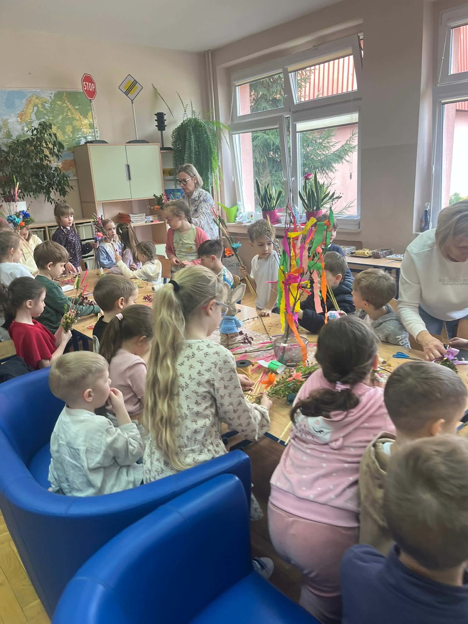 25 marca tuż przed Niedzielą Palmową przedszkolaki z grupy „Jagódki”  oraz uczniowie z klasy 1 a  wzięli udział w warsztatach robienia palm wielkanocnych. Celem zajęć było przybliżenie tradycji Świąt Wielkanocnych, doskonalenie umiejętności współpracy, rozwijanie poczucia estetyzmu i rozbudzanie wyobraźni.