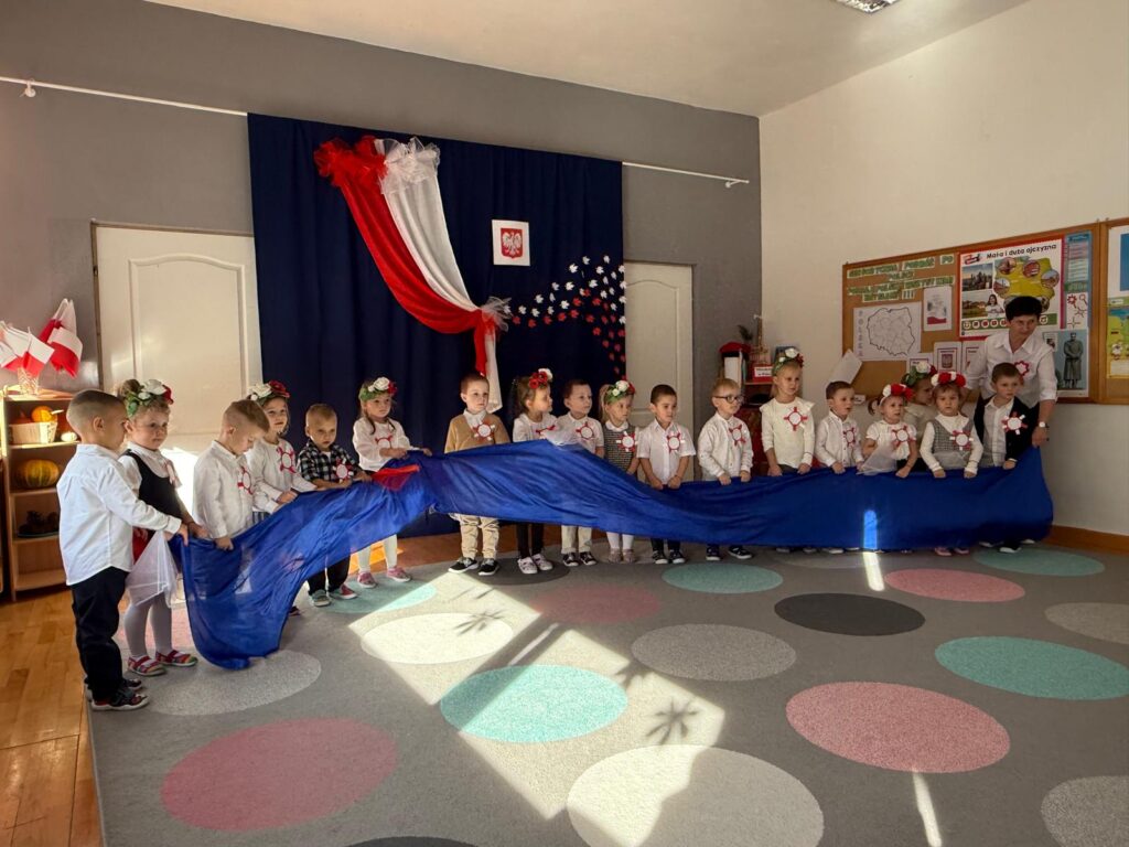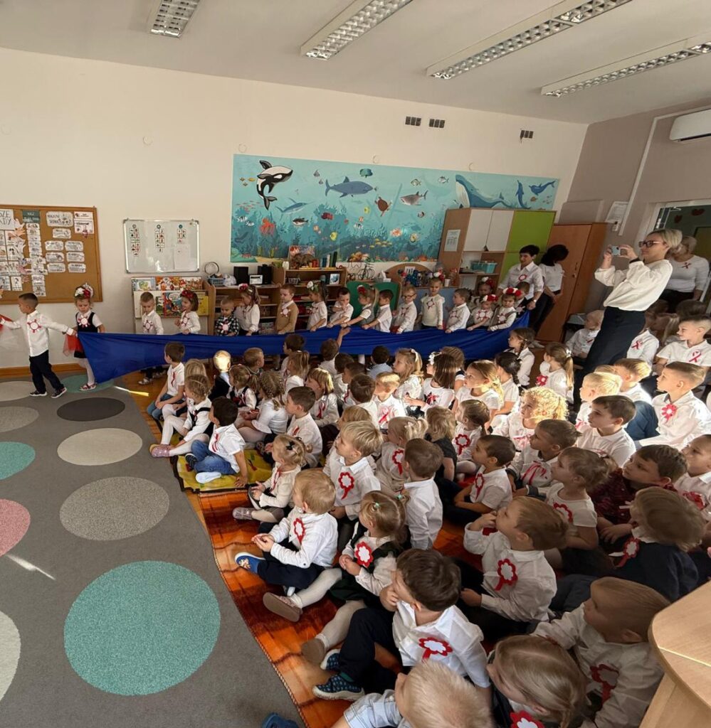 Na zakończenie uroczystości wszystkie dzieci wspólnie odśpiewały hymn narodowy, biorąc udział w ogólnopolskiej akcji „Szkoła do hymnu”. To był dzień pełen wzruszeń, dumy i wspólnego świętowania naszej ojczyzny