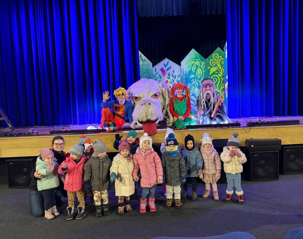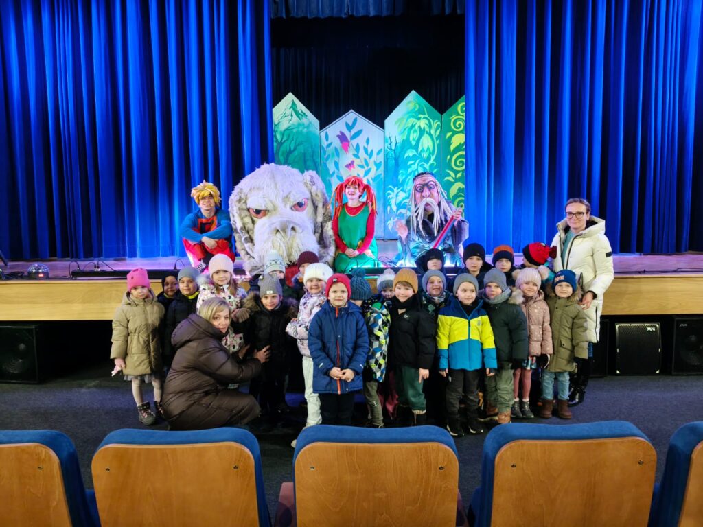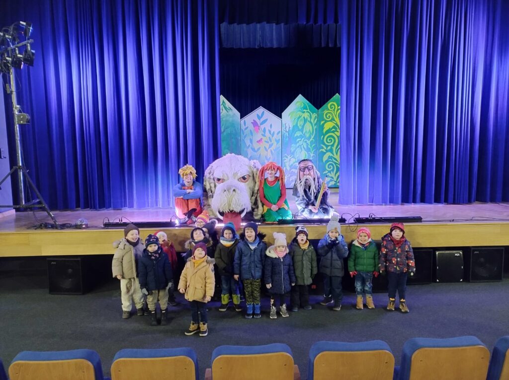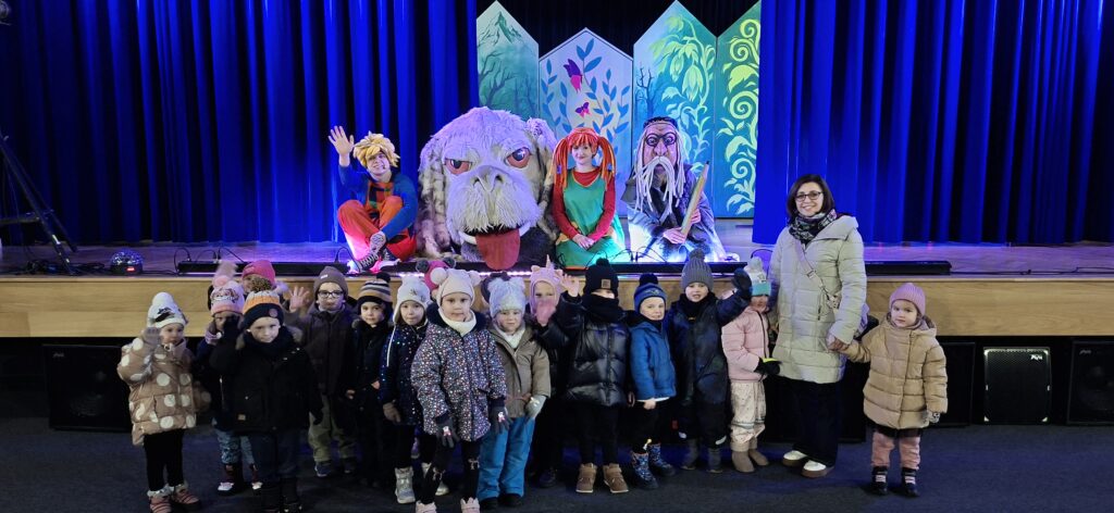 Nasze przedszkolaki miały dziś wyjątkową okazję uczestniczyć w spektaklu „Czarodziejski ołówek” w wykonaniu Poznańskiego Teatru Aktora. Dzieci z ogromnym zainteresowaniem śledziły losy bohaterów, a barwna scenografia i pełna humoru gra aktorska sprawiły, że przedstawienie na długo pozostanie w ich pamięci.