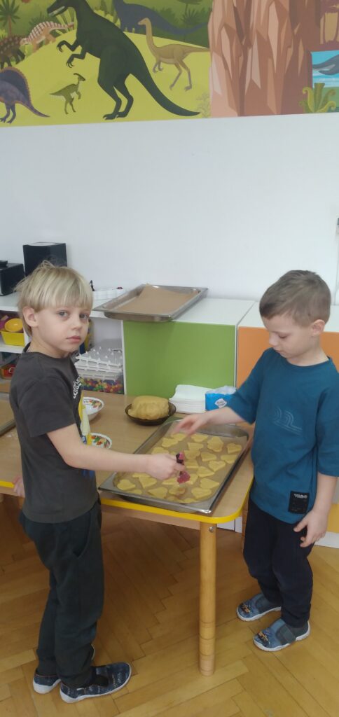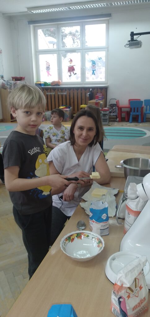 W poniedziałek w grupie Biedronki odbyły się warsztaty cukiernicze. Dzieci poznały zawód cukiernika, dowiedziały się jak robi się torty, jak się je dekoruje i czym. Pozatym wykonały kruche casteczka maślane , które panie kucharki upiekły w kuchni. Ciasteczka te będą prezentem od dzieci dla Babć i Dziadków. Wszystkie dzieci były bardzo zadowolone ze swojej pracy, dużo się dowiedziały i pobudziły swoje wszystkie zmysły.